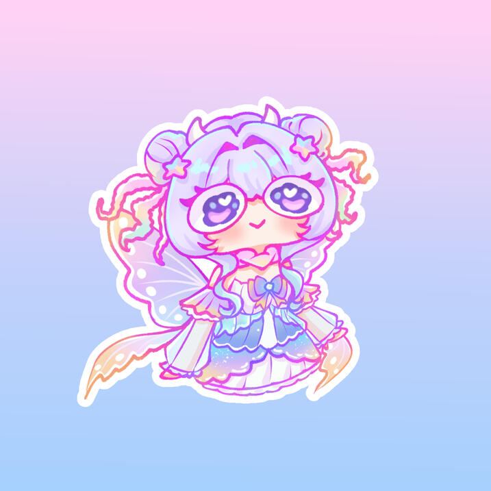 Long ago, Namiya Pofumi wasn’t a sea butterfly. She was a tiny stargazer spirit — light as a whisper, drifting between dreams and humming lullabies into sleeping hearts. One night, she followed a falling star too close to the ocean… and slipped beneath the surface.The sea was soft. Gentle. But instead of floating back up, she sank — past the coral reefs, past sunlight, into the deep unknown. Into the Moonlit Abyss.There, wrapped in silence and glow, Namiya began to change. Her stardust wings softened into fluttering sea fins. Her glow dimmed into a shimmer. And she became something new — a clione, a sea butterfly, drifting alone in the dark.Or so she thought.One day, a tiny orb of light found her — a curious sea spirit who giggled in bubbles and blinked like starlight. Namiya named her Emi (笑海) — “laughter of the sea.” Now Emi floats by her side, lighting her path, mimicking her fluttery pofu-pofu sounds, and reminding her that even in the deepest abyss… she’s not truly alone.So now, Namiya sings again — through streams and sparkles, fluttering from the deep. She hopes her voice will reach someone at the surface — someone kind, someone dreaming.Maybe even you.